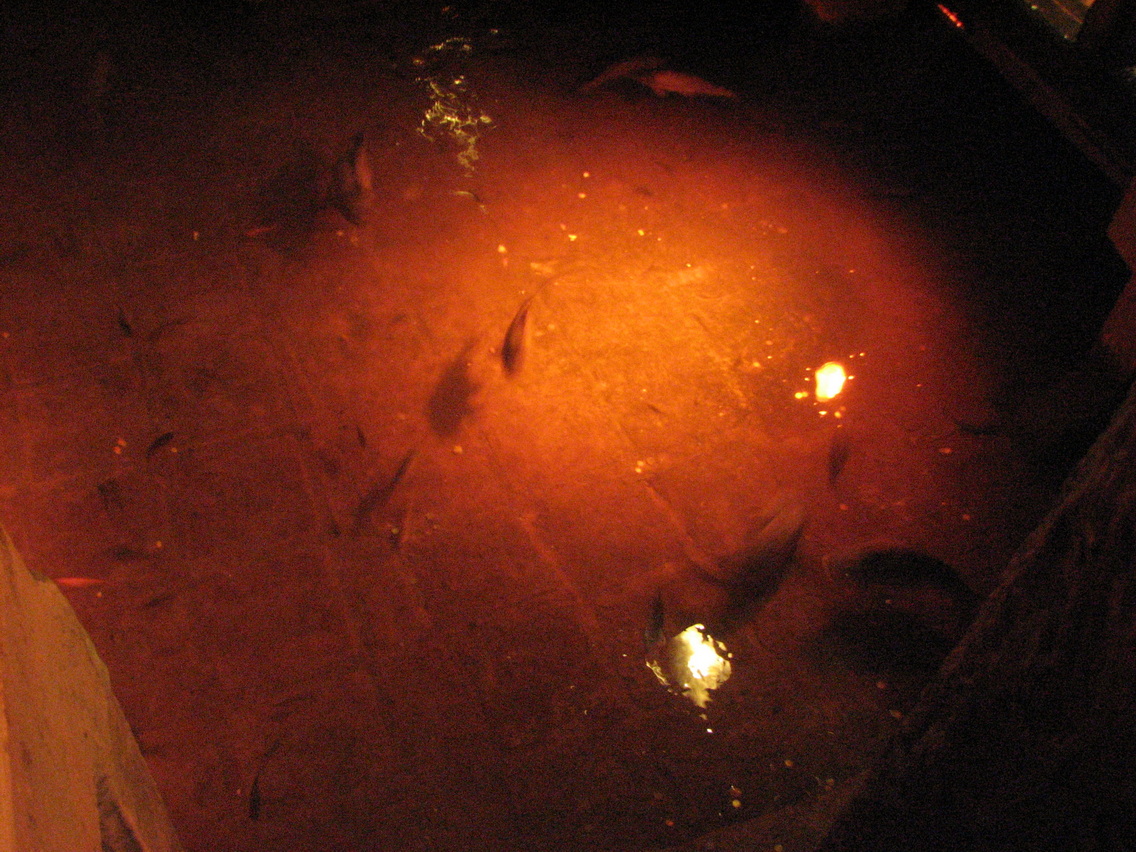지금은 물이 말라 약 한자 정도 되는 깊이 속에 많은 잉어들이 노닐고 있었습니다.