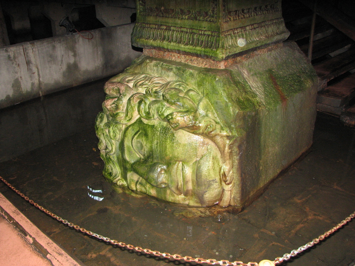 이는 아마도 이를 건설한 사람들이 이방신들을 믿지않는 기독교인들이었기에 일부러 이렇게 하지 않았는가 싶습니다. 이 메두사의 머리도 어디엔가 있었던 신전에서 뽑아온 것만은 확실한데 그게 어디인지는 아무도 모른답니다.