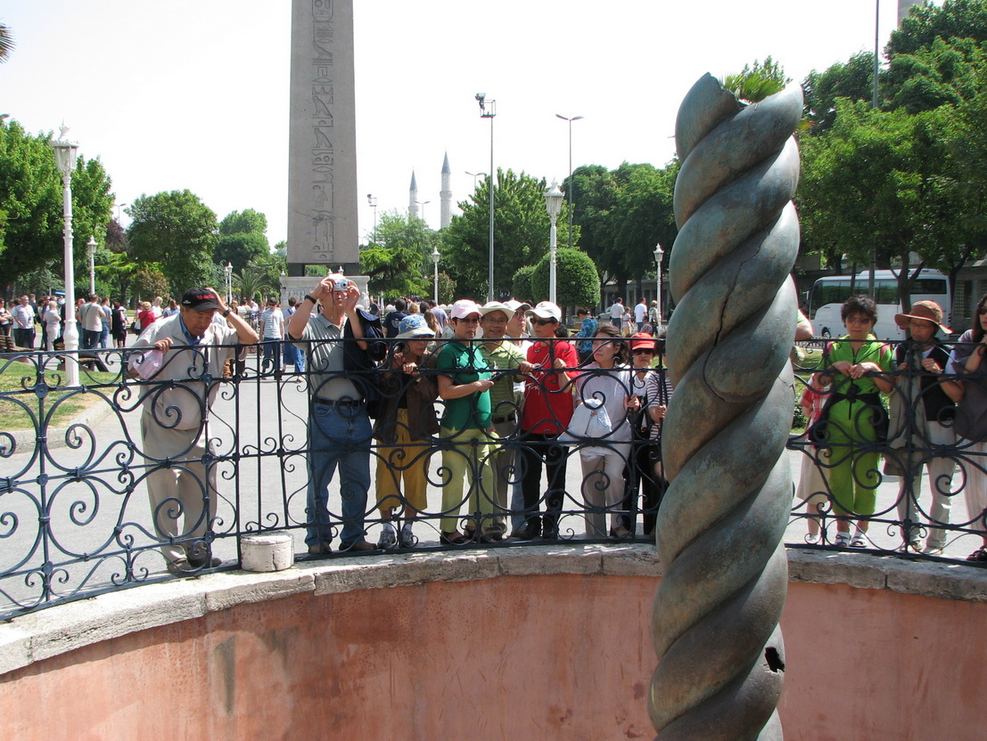 황금 솥이 언제 없어졌는지는 모르지만 1700년 초까지는 뱀머리가 제 자리에 있었다고 하는데, 지금은 뱀의 머리도 없어지고 잘려 나간 몸통만 남아 있어 그게 과연 세 마리인지, 두 마리인지 알 길 없이 서로 꼬고 있는 부서진 기둥에 지나지 않았습니다.