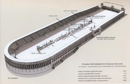 본래 이곳은 AD.196년, 로마의 황제 세베루스에 의해 지어진 검투 경기장이 었는데, 4세기 무렵 비잔틴 황제인 콘스탄티누스에 의해 검투 경기는 금지되고 대신 말이 끄는 전차 경기장으로 더 크게 증축되었습니다.